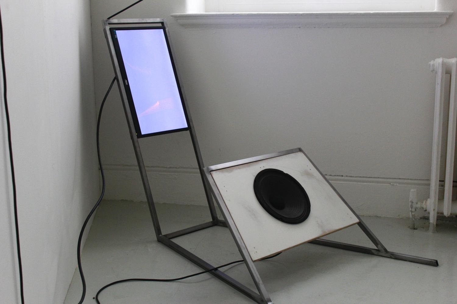 Found Cabinet, Aluminium, Diffusion Panel, Inkjet on Transparency, Arduino, Relay, LED Light